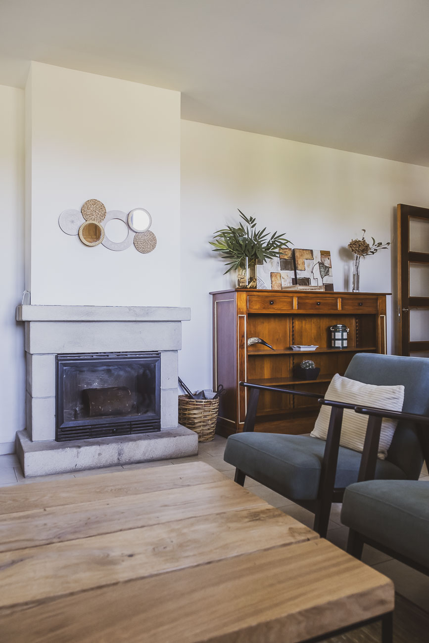 Acogedor salón-comedor con chimenea, perfecto para los días de invierno. Cocina independiente totalmente equipada. 2 dormitorios dobles y 2 baños completos. Porche de 24 m² con orientación Sur: El lugar ideal para disfrutar del sol todo el día con vistas al jardín.