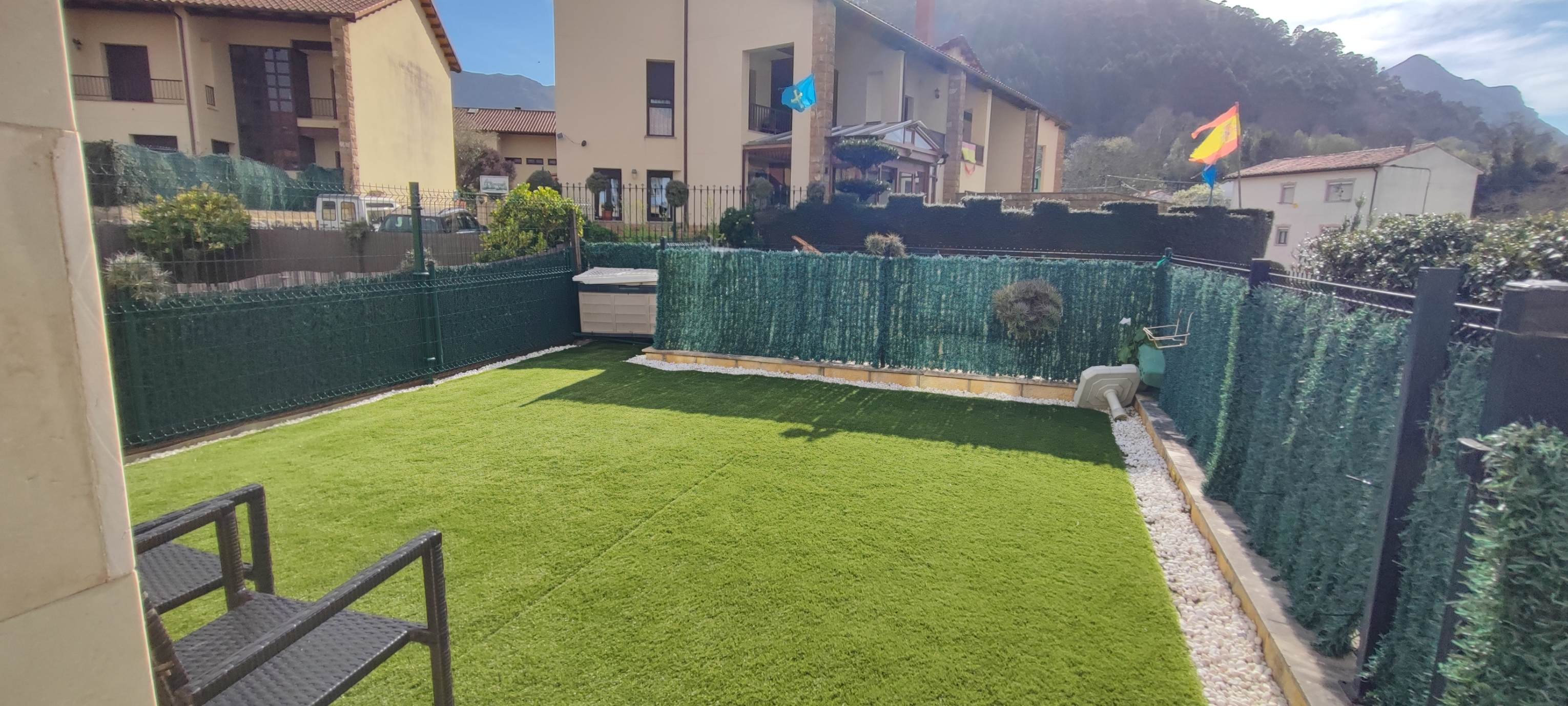 La casa cuenta con una parcela de terreno de unos 25-30 m², perfecta para zona de jardín y relax.